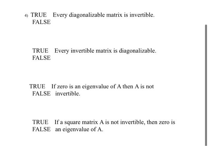 4 True Every Diagonalizable Matrix Is Invertible Chegg Com
