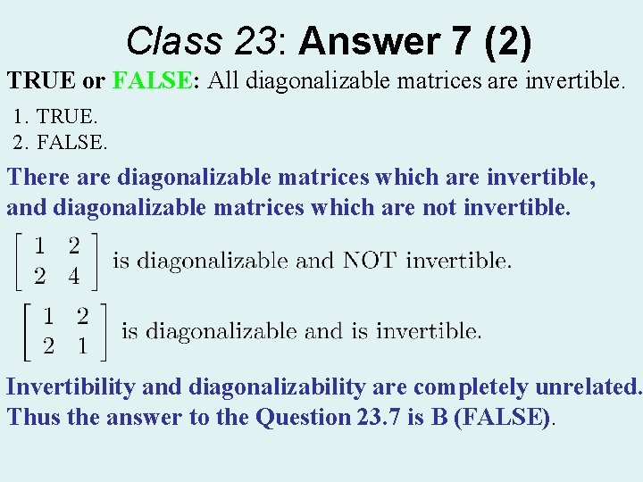 True Or False Every Diagonalizable Matrix Is Invertible Problems In Mathematics
