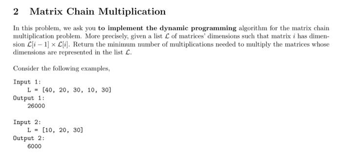 Matrix Chain Multiplication In This Problem We Ask Chegg Com